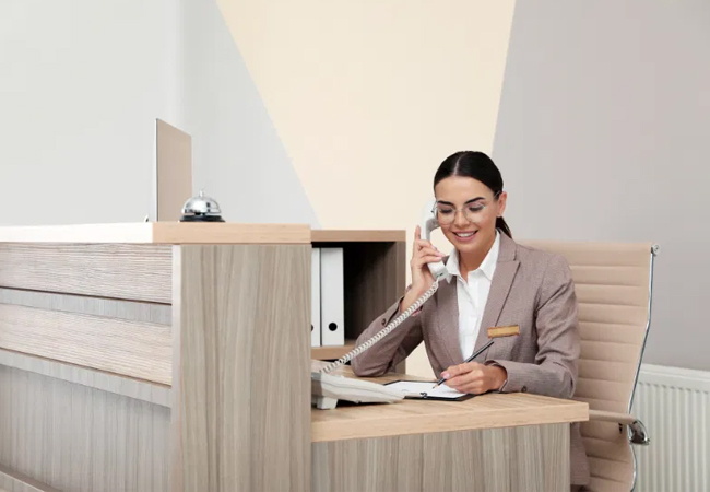 Role :Greets visitors and manages front-desk operations smoothly and professionally.